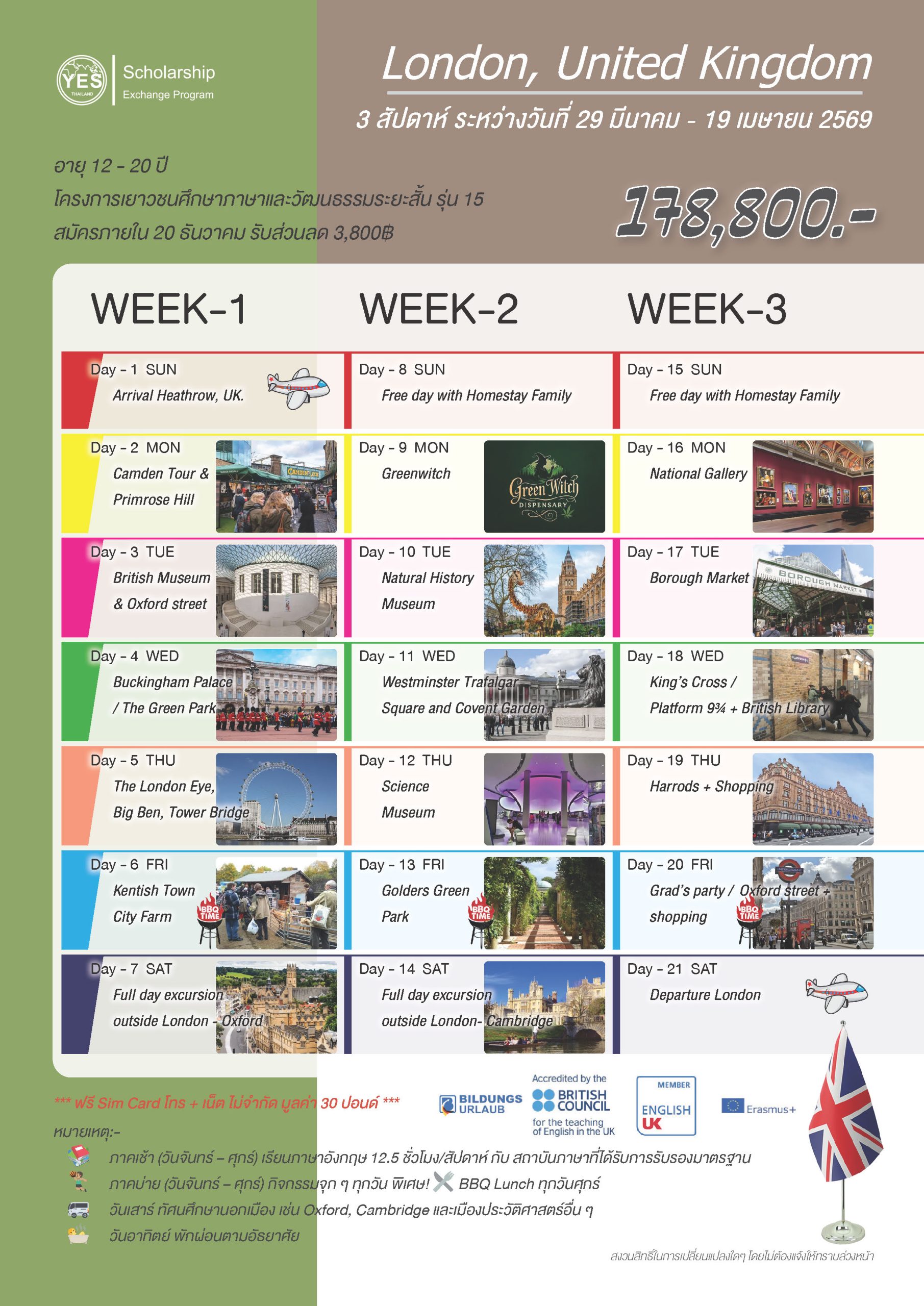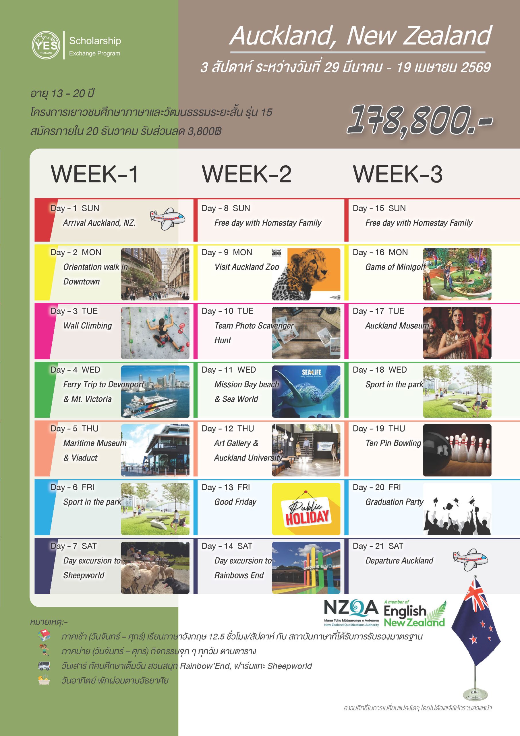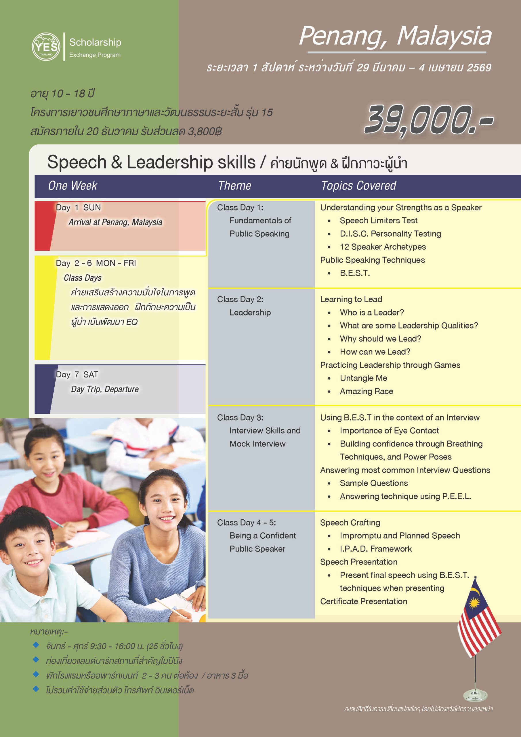 ทุนแลกเปลี่ยนภาษาและวัฒนธรรม YES ในหลากหลายประเทศ สำหรับนักเรียน ม.3 – ม.5 (อายุ 15 -18.5ปี ในวันเดินทาง) เป็นการเรียนภาษาด้วยวิธีธรรมชาติ โดยพักอาศัยกับเจ้าของภาษา